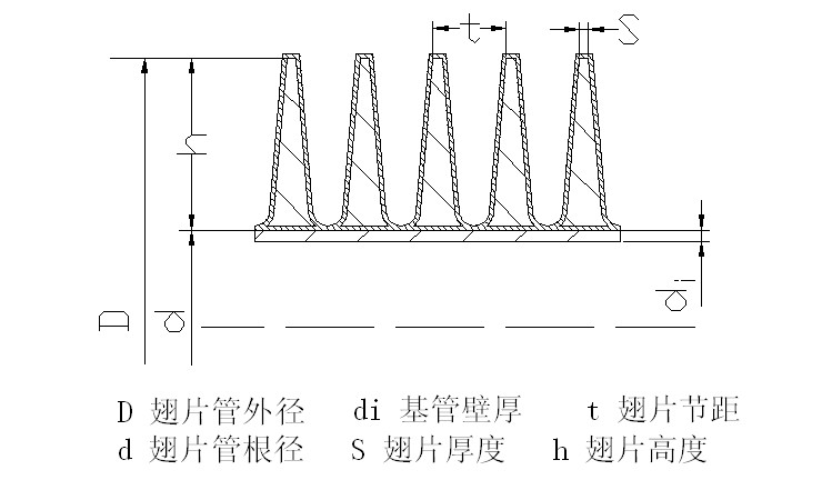 1、翅片緊密的纏繞在基管外表面,經(jīng)熱工實驗室測試,其接觸熱阻小,傳熱性能高。