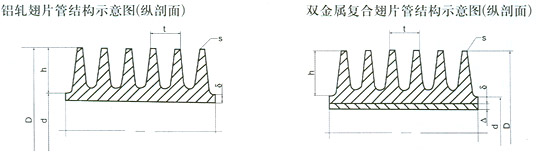 鋁軋翅片管結(jié)構(gòu)示意圖(縱剖面)